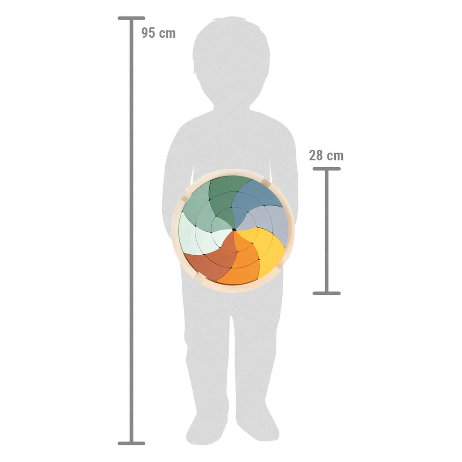 Dieses vielseitige Farbpuzzle besteht aus 24 Teilen in modernen Farben und lädt spielerisch zum Puzzeln, Sortieren, Stapeln und Mustern ein. Inspiriert von der Montessori-Lehrmethode regt das Farbpuzzle Kinder zum kreativen und fantasievollen Spielen an und schult gleichzeitig ihre Vorstellungskraft und ihr Verständnis für verschiedene Größen, Farben und Formen. Die hölzernen Puzzleteile können sowohl innerhalb als auch außerhalb des Puzzlerahmens zu einzigartigen Mustern zusammengesetzt werden.