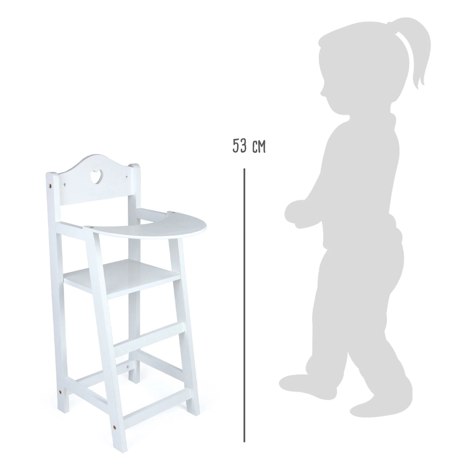 Dieser schlichte Holzhochstuhl für Puppen lässt Kinderherzen höher schlagen! Weiß lackiert und mit einem kleinen Herzausschnitt verziert, ist es eine stilvolle Ergänzung zu Ihren Puppenaccessoires.
