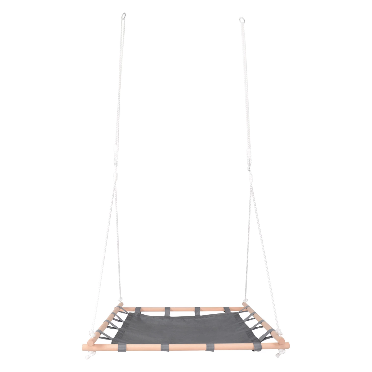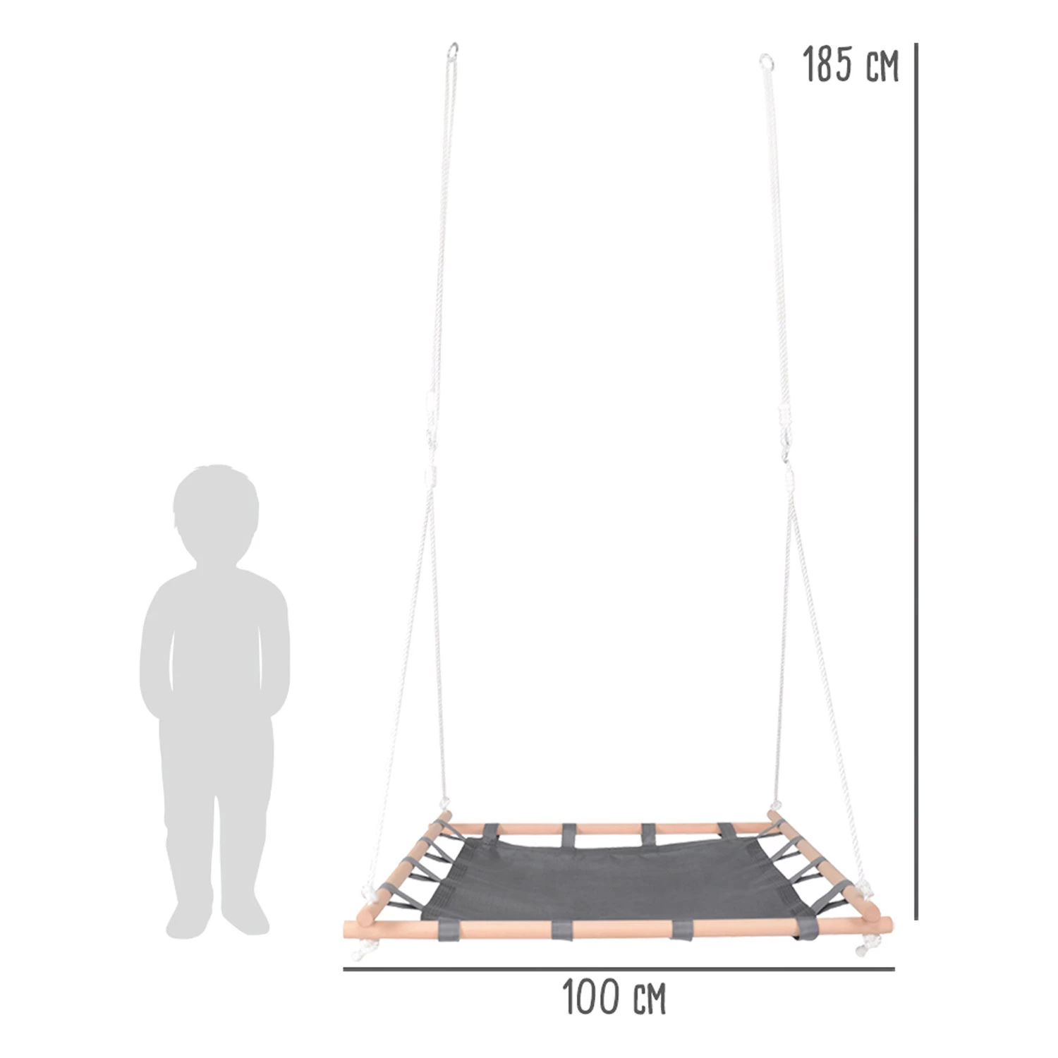 Schaukelspaß in quadratischer Form! Ob als Gartenschaukel oder Indoor-Schaukel, diese quadratische Nestschaukel im modernen Design ist mit ihrem stabilen Gestell aus naturbelassenem Holz überall ein echter Hingucker! Die große, komfortable Schaukelfläche aus strapazierfähigem und pflegeleichtem Material bietet Platz für mehrere Kinder zum Schaukeln, Spaß haben und Entspannen. Jeder kann einsteigen, solange im Nest Platz ist! Das Schaukeln auf Nestschaukeln regt dazu an, in einer Minute zu entspannen und in der nächsten jede Menge Spaß zu haben. Von sanftem Hin- und Herschwingen bis hin zu hochfliegenden Bögen ist alles möglich. Auch hier macht der umweltfreundliche Werkstoff Holz eine gute Figur!