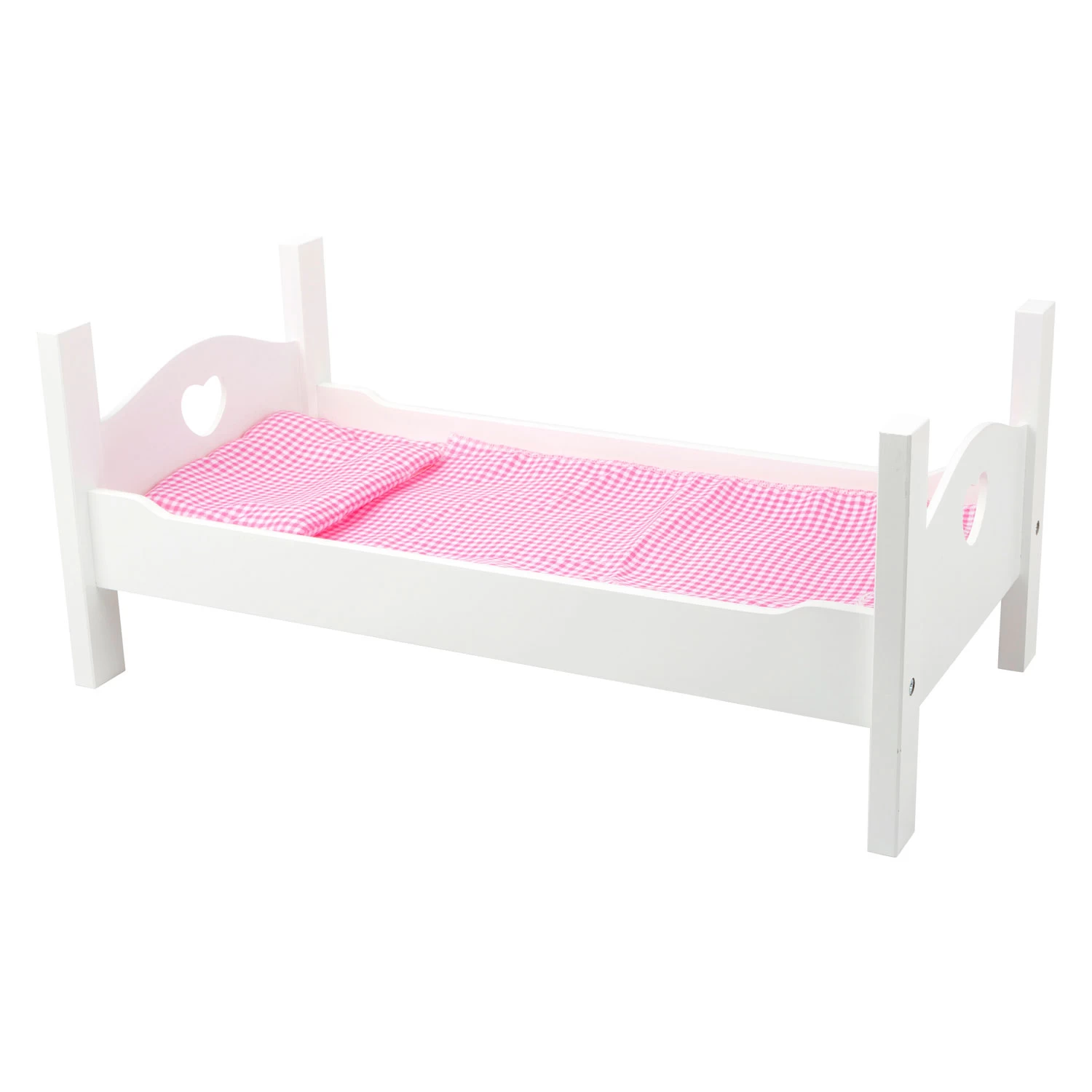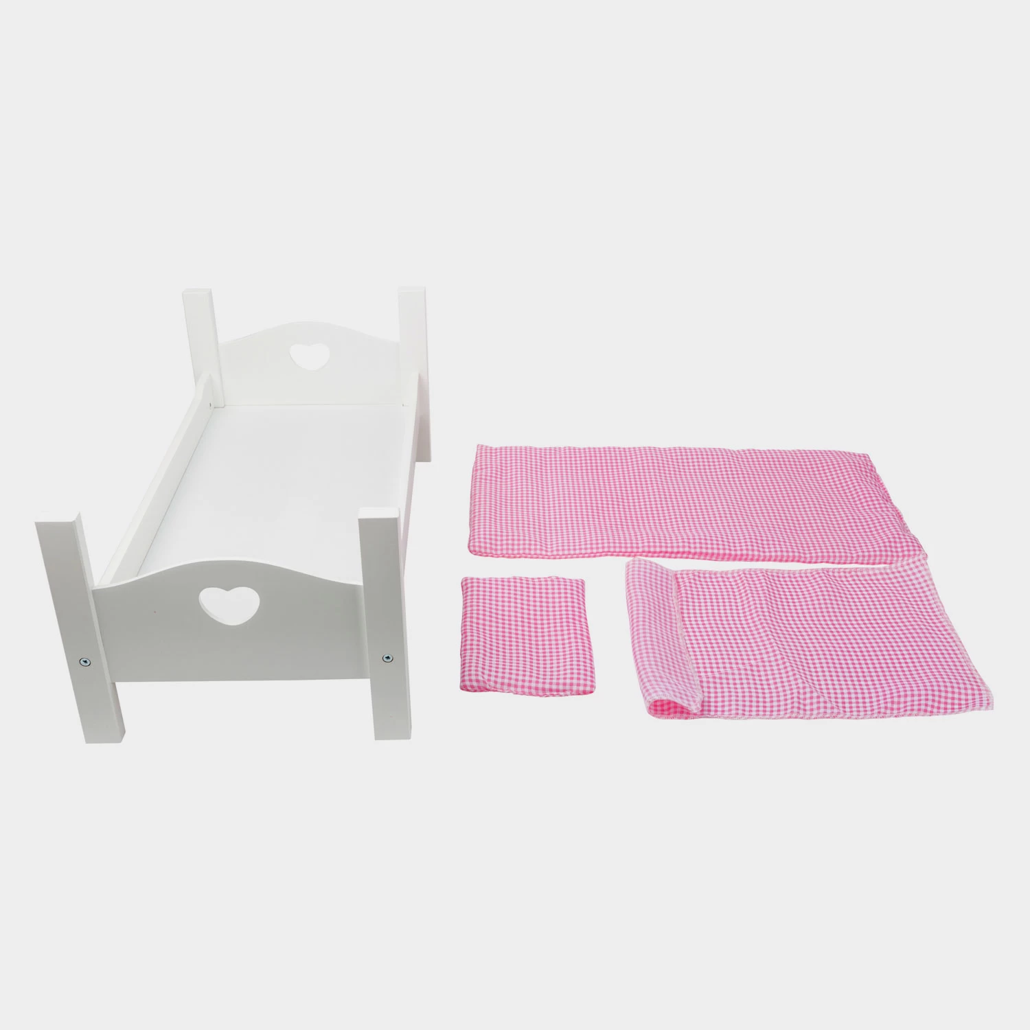Hier wird es keiner Puppe schwerfallen, ins Bett zu gehen. Dieses moderne Puppenbett aus Holz mit bezaubernden Herzmotiven lässt Puppenträume wahr werden. Junge Puppenmütter und -väter lernen spielerisch den Ablauf des Schlafengehens, indem sie ihre Fantasien im Rollenspiel nachspielen. Die niedliche Bettwäsche, bestehend aus einem Kissen, einer Decke und einem Laken, sorgt für eine angenehme Nachtruhe, während die hochwertige Verarbeitung für langanhaltenden Spielspaß sorgt.