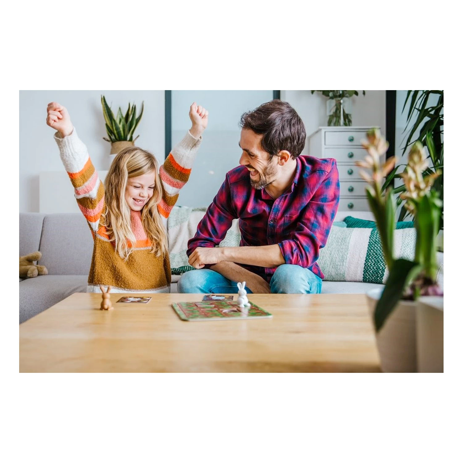 Grabbit! Helfen Sie Ihrem Kaninchen, die 4 verschiedenen Gemüsesorten einzusammeln, um das Spiel zu gewinnen. Aber vergessen Sie nicht, wo Sie waren, sonst stehlen die Tiere, die unter der Erde leben, Ihr Gemüse zurück! Üben Sie Ihr Gedächtnis und schlagen Sie Freunde und Familie mit dieser unterhaltsamen Variante des klassischen Memory Spiels! Spaß für 2 bis 4 Spieler. Geeignet für Kinder ab 4 Jahren.