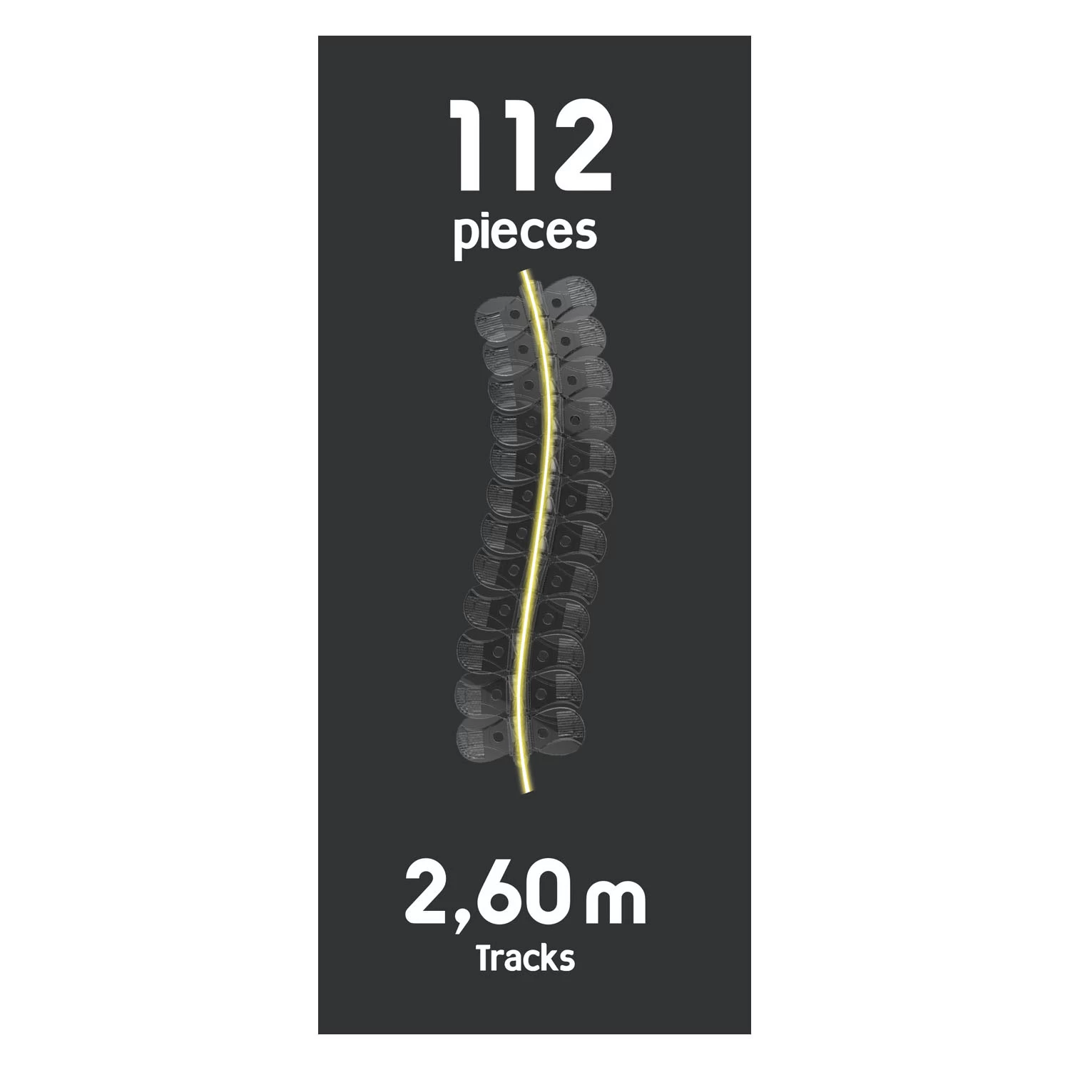 Diese FleXtreme-Rennstrecke ist wirklich das nächste Level ! Die einzelnen Schienenstücke sind speziell geformt und dadurch flexibel verlegbar. Damit lässt sich die coolste Rennstrecke bauen, jetzt sogar mit elektrischem Neonlicht! FleXtreme-Rennstrecke: extrem flexibel! Machen Sie eine Schleife, drehen Sie die Strecke um oder kreuzen Sie sie vom Tisch zum Stuhl. Mit dem Smoby FleXtreme Neon Set ist nichts zu verrückt! Dieses 112-teilige Rennset besteht aus nicht weniger als 2,6 Metern Strecke mit Lichtfasern, einem beleuchteten Tunnel und einem Elektroauto mit Lichtern. Es gibt verschiedene Modi und nicht weniger als 7 Farboptionen für die Beleuchtung dieses coolen Rennsets. Im Dunkeln erleben Sie ein wahres Lichtspektakel, wenn das Auto über die Strecke rast. Das Smoby FleXtreme Neon Set ist mit allen bestehenden FleXtreme Sets kombinierbar. Batterien enthalten. Geeignet für Kinder ab 4 Jahren.