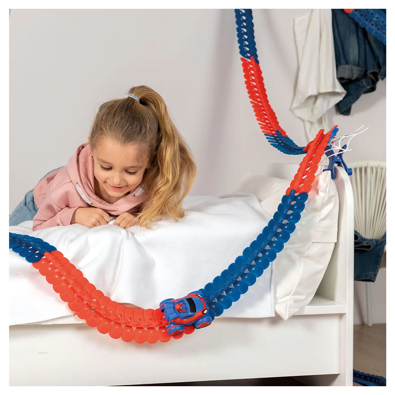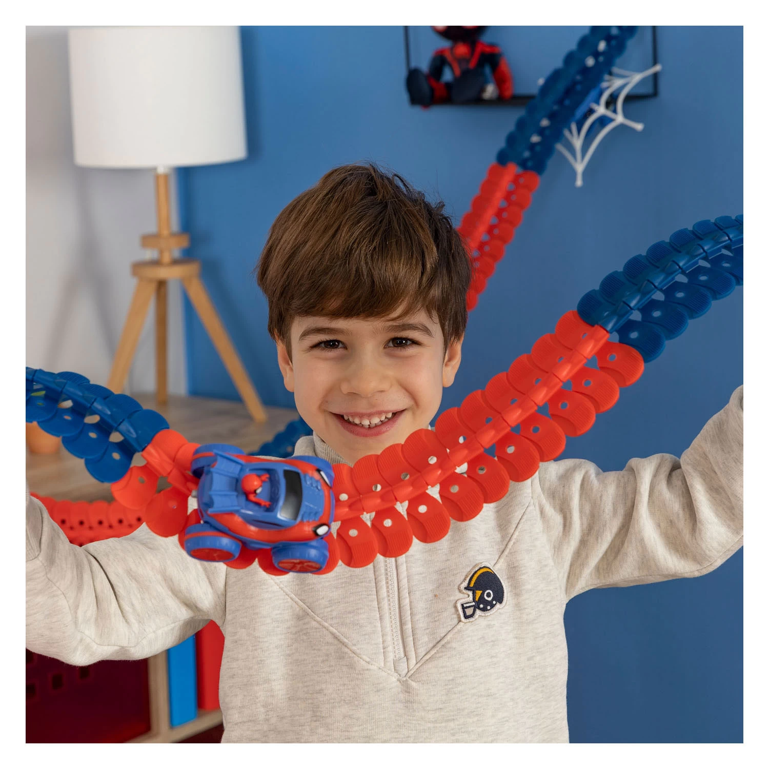 Entwerfen und bauen Sie dank der flexiblen Gleise eine große Anzahl von Schaltkreisen ohne Einschränkungen, indem Sie Ihre Umgebung und die Objekte um Sie herum nutzen. Spideys Fahrzeug klammert sich an die Strecke und startet ein verrücktes Rennen: Klettern, Bergab, Kopfüber-Passagen, Drehungen, Loopings, Strecke und Auto sind zu allem fähig! Die Schiene ist flexibel und kann daher über allen möglichen Gegenständen platziert werden und sogar durch die Luft schweben! Spideys Auto ist im charakteristischen Blau und Rot seines Anzugs dekoriert und die Lichter des Autos gehen an und aus!