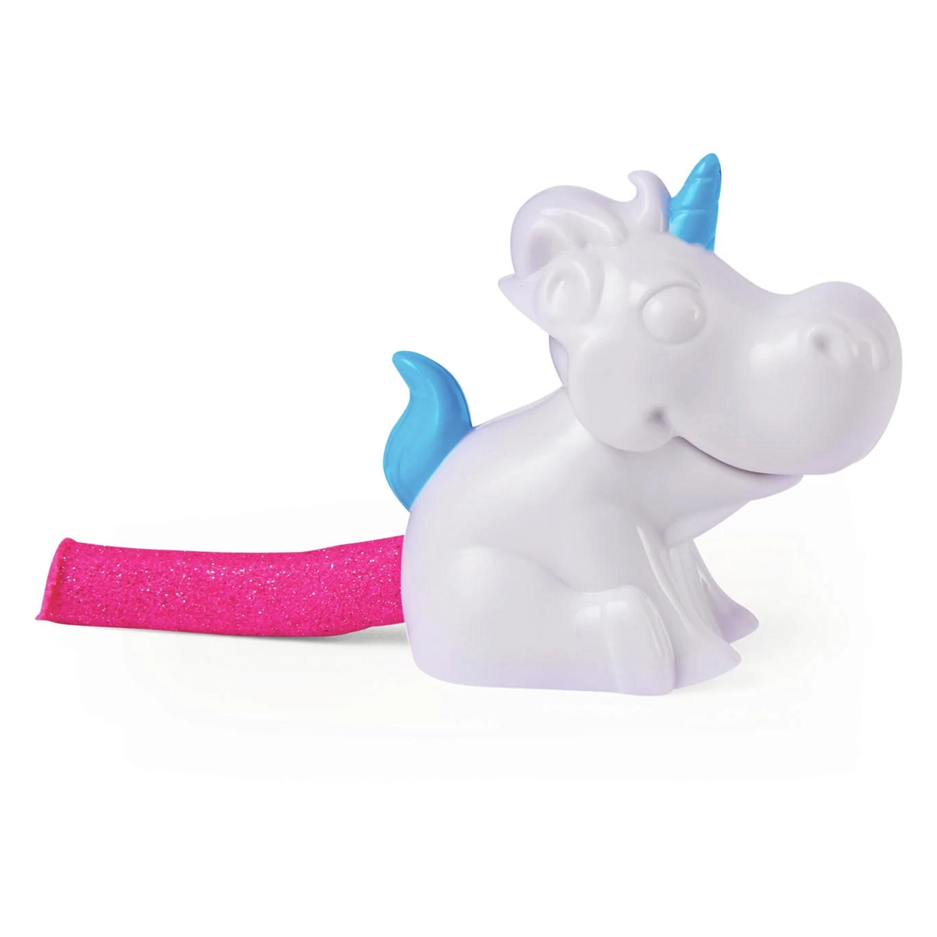 Inhalt: 226 g glitzernder lila Kinetic Sand, 226 g glitzernder rosa Kinetic Sand, 226 g glitzernder blaugrüner Kinetic Sand, 226 g weißer Kinetic Sand, 1 Einhornfigur, 1 Einhornlöffel, 1 Stern-/Mondringform, 1 einzelner Turm, 1 Cutter, 1 Ziegelform, 1 Bogenform, 1 Schaufel, 1 Sandkasten, 1 druckbare Umgebung, 1 Anleitungsblatt