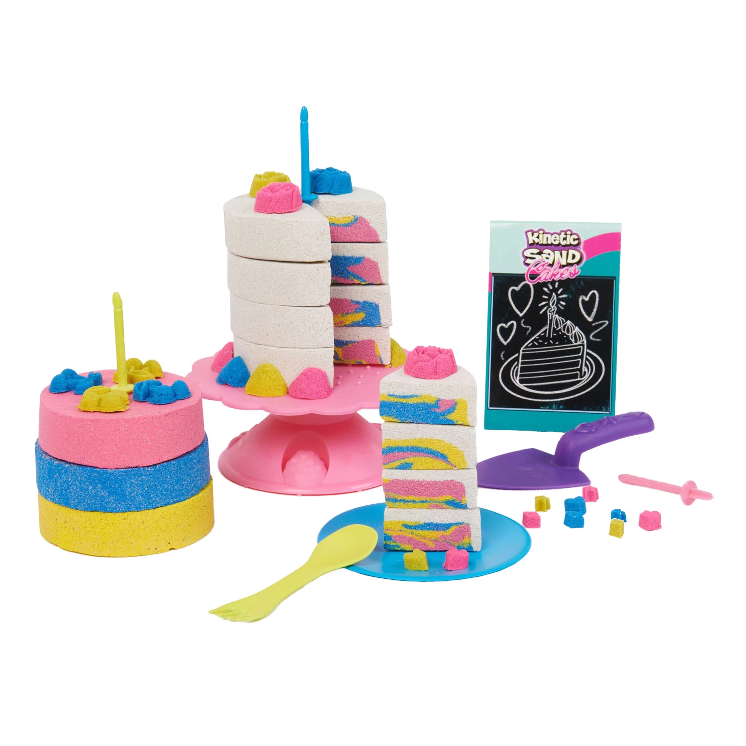 Inhalt: 680 g Kinetic Sand, 1 Tortenständer, 1 Tortenheber/Toppingform, 3 Kerzen, 1 Werbetafel, 1 äußere Tortenringform, 1 innere Tortenringform, 1 Gabel/Löffel, 1 Teller, 1 Szenenhintergrund