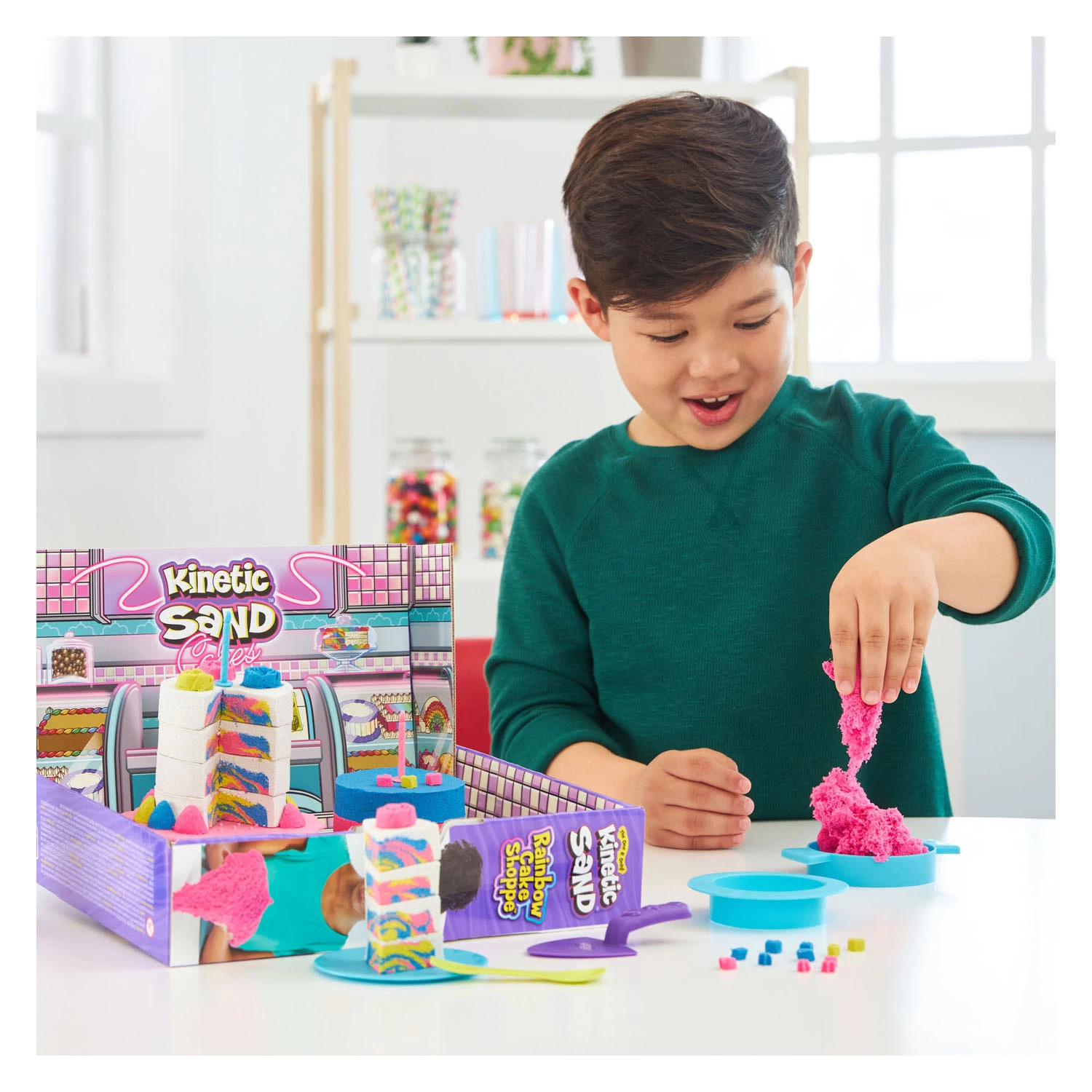 Beachten Sie die beiliegende Anleitung zum Schichten und Mischen von Kuchenkreationen. Beim Mischen, Kneten und Dekorieren ihrer Kuchen entwickeln Kinder ihre Feinmotorik, steigern ihre Kreativität und erleben das angenehme Gefühl, mit dem einzigartigen Kinetic Sand zu spielen. Kinetic Sand besteht aus natürlichem Sand und haftet an sich selbst für störungsfreien Spaß. Dieses Kinetic Sand Set ist nicht nur eine tolle Alternative zu Modelliermasse, sondern auch eine tolle Ergänzung für den Basteltisch, Kinderaktivitäten und Montessori-Spielzeug. Es ist ein perfektes cooles Spielzeug für Mädchen und Jungen. Stimulieren Sie die Kreativität und Fantasie Ihrer Kinder mit dem Kinetic Sand Rainbow Cake Shop. Spielen war noch nie so süß.