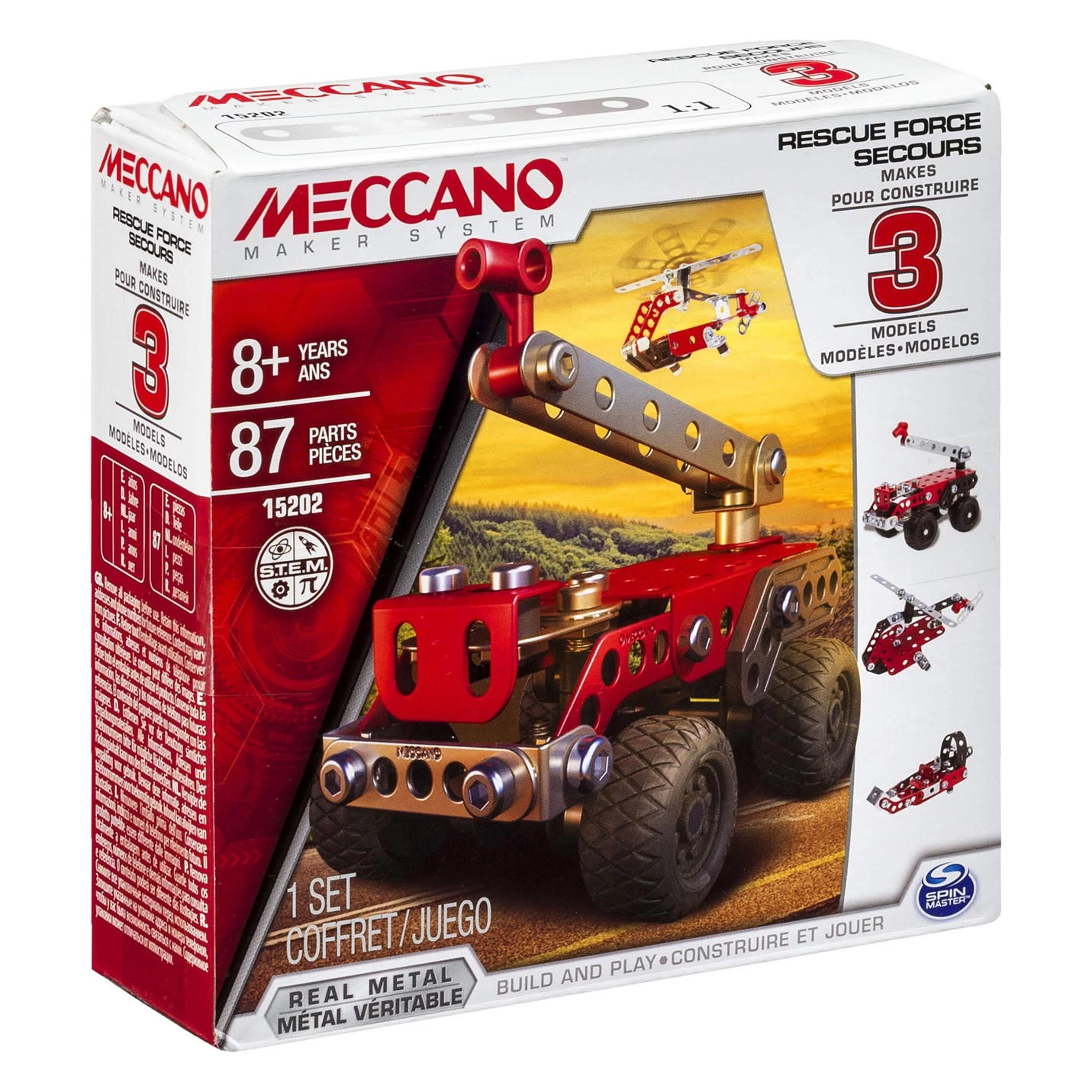 Das 3-in-1-Set mit funktionierenden Rettungsfahrzeugen besteht aus 87 Teilen, darunter funktionierende Räder, 2 echte Werkzeuge und eine leicht verständliche Anleitung. Entdecken Sie die mechanischen Wunder der Welt, während Sie mit Ihrem Rescue Squad-Set eine Katastrophe abwenden. Mit Meccano können Sie die Zukunft gestalten.