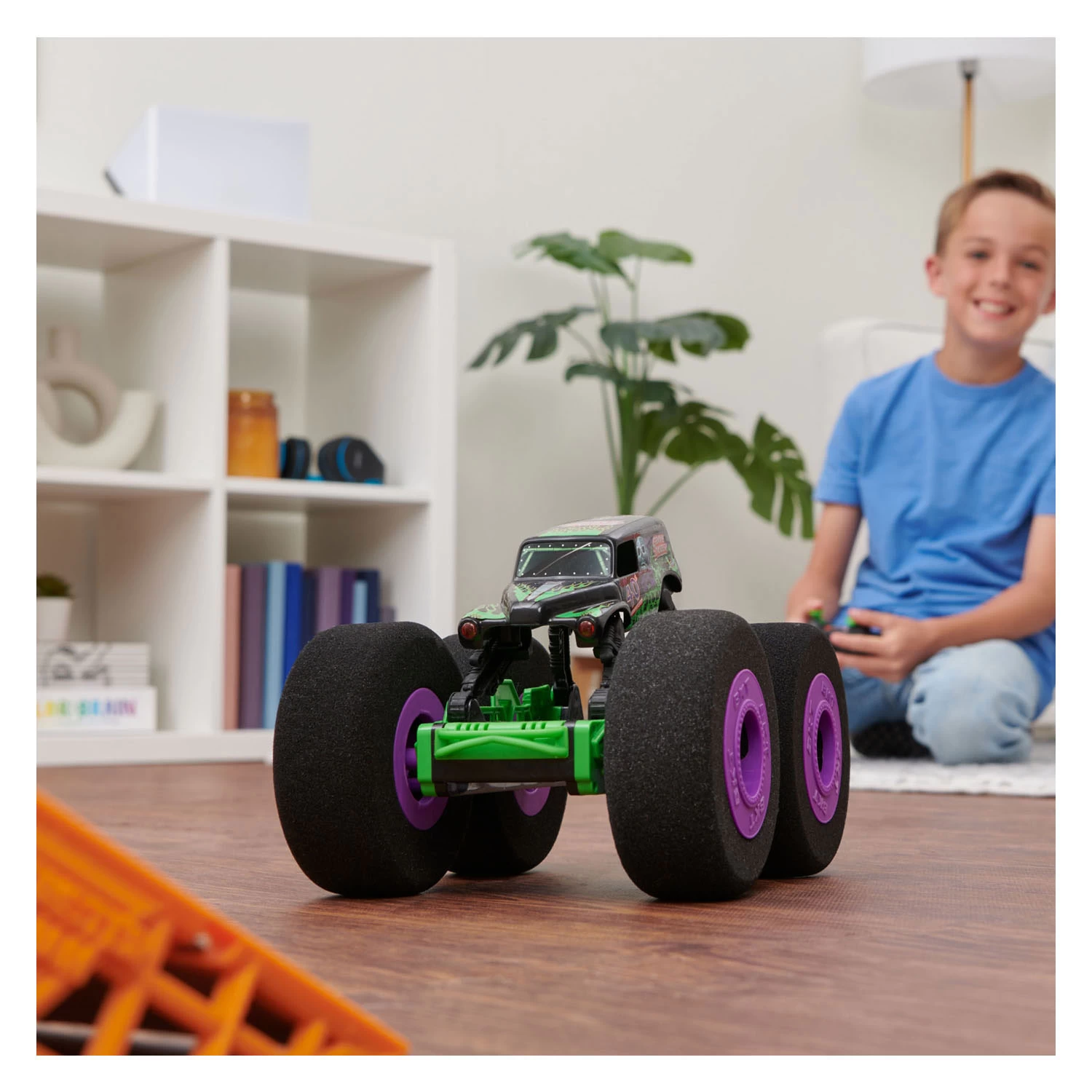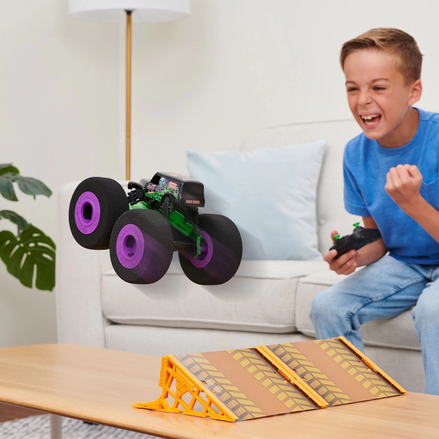 Holen Sie sich die Monster Jam-Action nach Hause mit dem Monster Jam Ramp Champ. Dieses Set enthält einen Grave Digger RC zum 40-jährigen Jubiläum und eine modulare Rampe. Führen Sie Stunts aus, die Sie in den Live-Shows sehen. Führe erstaunliche Stunts wie weite Sprünge, Backflips, Korkenzieher und umgekehrte Backflips aus oder zerlege die Rampe, um einen Brückensprung zu machen. Seien Sie unaufhaltsam, fahren Sie, stürzen Sie ab und machen Sie weiter. Passen Sie die Wandleuchte Ihren Wünschen an. Der Grave Digger-RC verfügt über Indoor-sichere Räder, sodass Sie erstaunliche Stunts ausführen können. Dieses Set ist die perfekte Ergänzung Ihrer Monstertruck-Sammlung für stundenlanges fantasievolles Spielen. Bringen Sie die markerschütternde Spannung von Monster Jam in Ihr Zuhause. Das Monster-Truck-Spielzeug von Monster Jam ist das perfekte Geschenk für Kinder ab 4 Jahren. Zeigen Sie Ihre tollen Stunts mit dem Ramp Champ von Monster Jam . Inhalt: 1 Ramp Champ Grave Digger, modulare Rampe, 1 Controller, 1 USB-Kabel, 1 Bedienungsanleitung