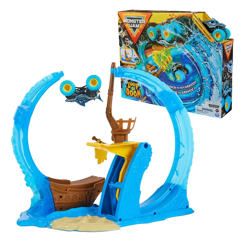 Machen Sie sich bereit für Action mit dem Monster Jam Megalodon Loop of Doom-Stunt-Spielset. Dies ist ein atemberaubendes, der Schwerkraft trotzendes Erlebnis direkt aus den pulsierenden Arenen von Monster Jam Events. So wie Monster Jam Trucks Millionen mit ihrer rohen Kraft und gewagten Stunts faszinieren, bietet Ihnen dieses Spielset die gleiche Spannung. Spüren Sie den Jubel der Menge, während Sie mit dem einzigartigen Megalodon-Truck im Maßstab 1:64 mit seinen authentischen Metalldetails durch die Schleife rumpeln. Dies ist die Art von schaurigem Spektakel, für die Monster Jam Fans leben. Aber bei Monster Jam geht es nicht nur um Spannung, sondern auch um die Herausforderung. Passen Sie den Schwierigkeitsgrad des Spielsets an, um an Ihre Grenzen zu gehen, genau wie es echte Monster Jam Fahrer in der Arena tun. Und wenn die Aktion für heute vorbei ist, parken Sie Ihren Megalodon im Krähennest, in einer für einen Gewinner angemessenen Höhe. Für alle Kinder, die gerne zusehen, wie Monster Jam Trucks der Schwerkraft trotzen, über Hindernisse springen und unglaubliche Stunts ausführen, ist dieses Spielset das ideale Geschenk. Aber auch für Kinder, die ferngesteuerte Autos und Lastwagen sowie Monstertrucks lieben. Holen Sie sich jetzt die tosende, donnernde Welt von Monster Jam . Inhalt: 1 Spielset, 1 Megalodon-Truck im Maßstab 1:64