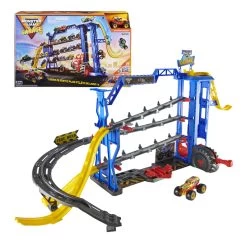 Dieses gigantische Monster Jam Spielset ist über 60 cm hoch und über 1,20 m breit, sodass Sie fantastische Monster Jam Stunts ausführen können. Platzieren Sie Ihre LKWs in der Hebebühne und ziehen Sie den Hebel, um sie anzuheben. Bringen Sie die Monster Jam Action mit echten Lichtern und Sounds auf die nächste Stufe. Diese Garage bietet Platz für mehr als 25 Monster Jam Trucks. Rollen Sie sie ein und präsentieren Sie eine Reihe Ihrer Lieblings- Monster Jam Trucks (separat erhältlich). Dieses Set enthält einen einzigartigen Grave Digger-Truck aus Metall zum 40-jährigen Jubiläum im Maßstab 1:64. Dieses Spielset ist nicht nur zum Parken gedacht, es ist auch für Action konzipiert. Auf jeder Etage können Sie einzigartige Stunts ausführen, die Rampen hinunterrasen und so schnell wie möglich fahren. Machen Sie einen Rückwärtssalto vom Dach oder rasen Sie die lange, geschwungene Rampe hinunter, um zu springen. Flitzen Sie mit Ihren Spielzeug-Trucks um die Kurven und testen Sie die Federung. Rollen Sie bis zu einem senkrechten Abstieg durch und schieben Sie andere Monster Jam Trucks aus dem Weg. Gehen Sie für einen Mega-Sprung ganz nach oben. Machen Sie eine Allradlandung oder stürzen Sie mit einem verrückten Schwung ab. Es spielt keine Rolle, denn das ist Monster Jam. Gehen Sie nach unten in die Garage und stellen Sie Grave Digger zum Auftanken auf die Hebebrücke, damit Sie für die Action bereit sind. Monster Jam Monstertrucks sind die perfekten Geschenke für Kinder ab 3 Jahren. Stellen Sie sie ab, machen Sie sich bereit und stürmen Sie die Strecke mit der Monster Jam Garage. Jetzt kann es losgehen. Inhalt: 1 Monster Jam Truck im Maßstab 1:64, 1 Liftbasis, 1 Liftschacht, 1 Liftwand, 1 Liftdach, 1 Rampenplattform für Backflips, 1 Rampe für Backflips, 1 Rampenstütze für Backflips, 1 Garagenbrett, 2 Parkhaken, 1 Schalthebel, 1 Sockel, 1 LKW-Ständer, 1 Stützwand, 1 Querträger, 3 Parkplattformen, 1 Weitsprungrampe, 1 Testrampe A, 1 Testrampe B , 1 großer Stützbalken, 1 kleiner Stützbalken, 1 Brechrampenwagen, 2 Pappdekore, 1 Aufkleberbogen, 1 Bedienungsanleitung