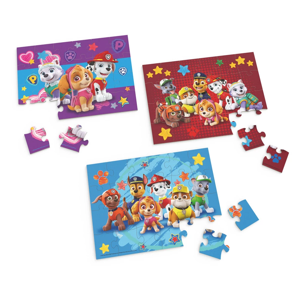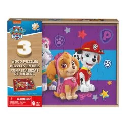 Diese PAW Patrol Spielzeuge für Mädchen und Jungen sind die perfekte Kombination aus Spaß und Lernen. Wenn Ihre Kinder die PAW Patrol-Serie und PAW Patrol The Movie lieben, holen Sie sich noch heute dieses Set mit 3 Puzzles. Mit diesen drei PAW Patrol-Puzzles mit 24 Teilen erhalten Sie ein gutes Preis-Leistungs-Verhältnis. Die stabilen Holzteile sind perfekt für kleine Hände und passen perfekt in die mitgelieferte Aufbewahrungsbox. Kinder werden die Bilder auf diesen Puzzles lieben. Das Set enthält ein rotes, ein blaues und ein lila Puzzle mit allen Charakteren der PAW Patrol, darunter Chase, Marshall, Skye, Rubble, Zuma, Rocky, Everest und Ryder. Stellen Sie die Welt von Adventure Bay mit diesen 28,4 x 21,3 cm großen Puzzles zusammen. Das Puzzle ist für Kinder im Alter von 3 bis 5 Jahren. Die Puzzles enthalten alle Lieblingscharaktere der Serie, haben ein einfaches Design und sind eine tolle Ergänzung für Ihre PAW Patrol-Sammlung. Kinder, die immer PAW Patrol auf dem Fernseher oder dem iPad sehen möchten, werden begeistert sein, Chase, Skye und viele weitere Welpen auf diesen Puzzles im Alter von 4 bis 8 Jahren zu sehen. Diese farbenfrohen Holzpuzzles bestehen aus nur 24 Teilen pro Puzzle, sodass jedes Kind kann es machen. Tauchen Sie noch heute in die Welt von PAW Patrol ein. Inhalt: 3 Holzpuzzles mit 24 Teilen, Aufbewahrungsbox aus Holz