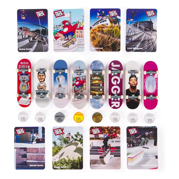 Bringen Sie die Olympischen Spiele zu Ihnen nach Hause mit dem Tech Deck Competition Legends-Set mit 8-Finger-Skateboards. Dieses Set ist der Hammer, mit authentischen Finger-Skateboards von echten Skate-Marken. Jedes Board zeigt Bilder Ihrer Lieblings-Skateboarder der Olympischen Spiele 2024 in Paris aus der ganzen Welt, wie Mariah Duran, Jagger Eaton und mehr. Sammle 8 Sammelkarten, auf denen diese Skater ihre Lieblingstricks ausführen.