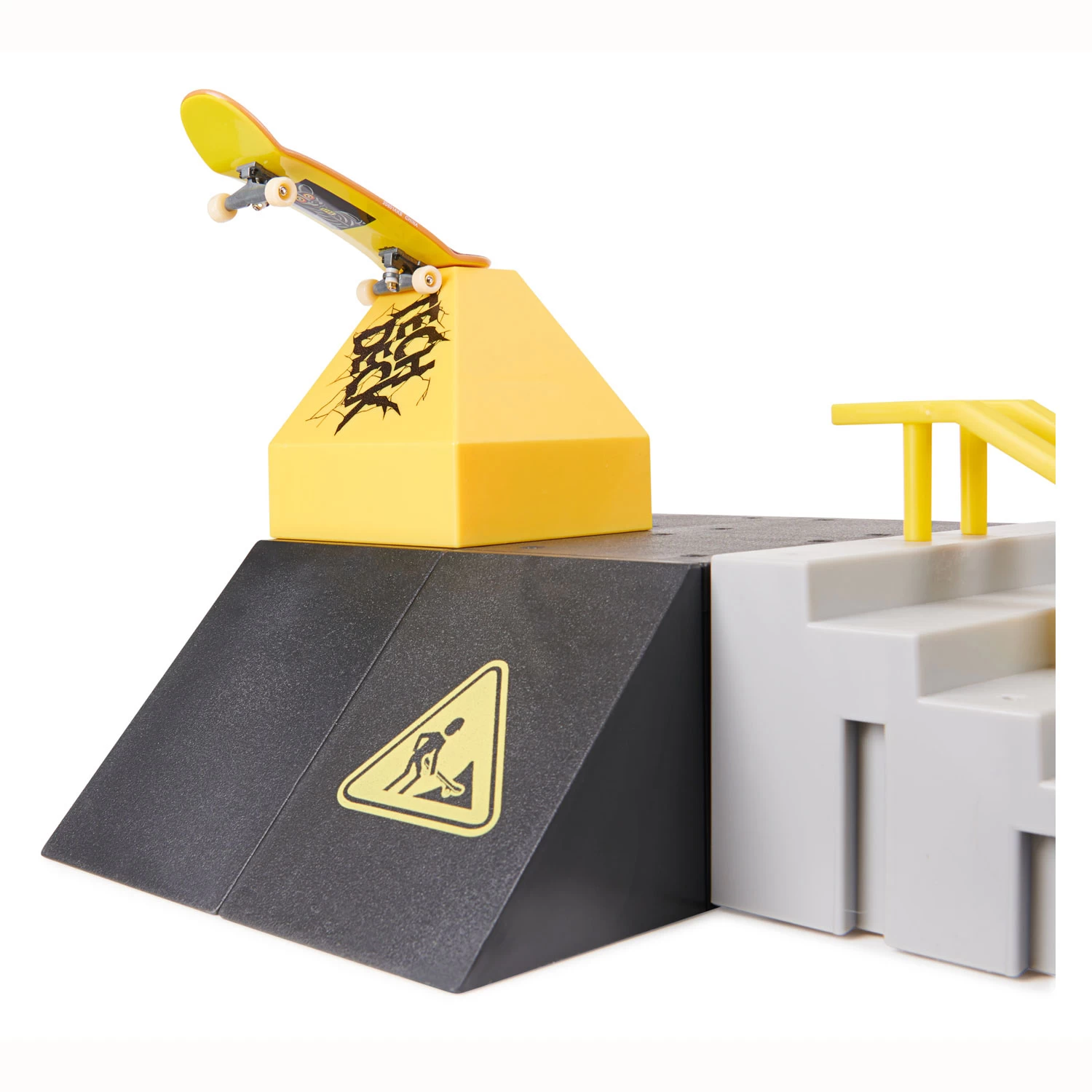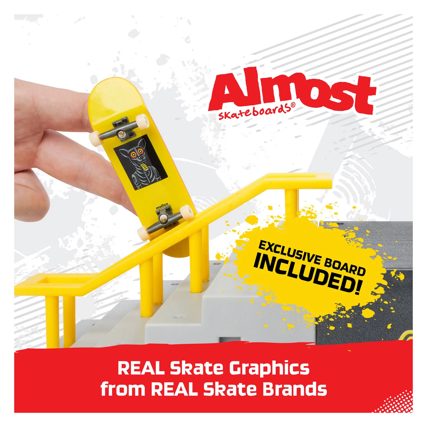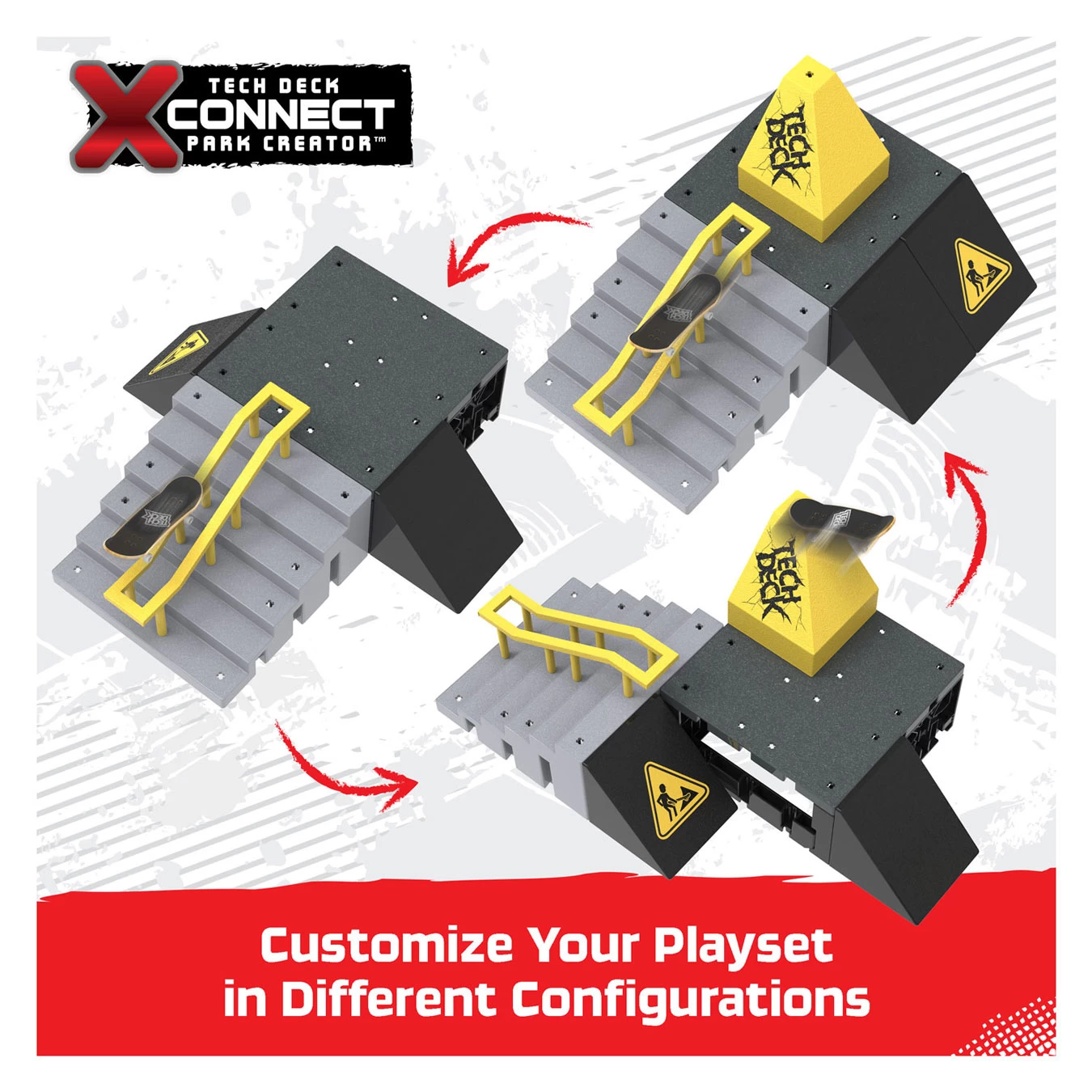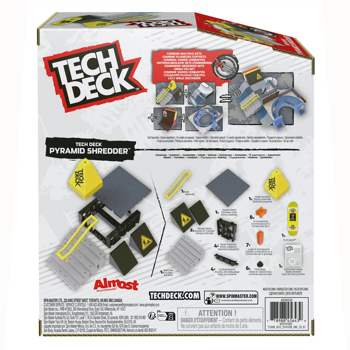 Perfektionieren Sie Ihre Fingerboard-Fähigkeiten mit dem Tech Deck Pyramid Shredder X-Connect Park Creator Rampenset. Dieses Set enthält alles, was Sie brauchen, um Ihren eigenen tollen Skatepark zu bauen. Machen Sie verschiedene Kombinationen mit der kleinen Pyramide, der Keilrampe und der Schiene, um Tricks zu lernen und zu verbessern. Lassen Sie sich von der Pyramide fallen, hängen Sie still auf der Rampe, schleifen Sie das Geländer oder gestalten Sie Ihren Skatepark ganz nach Ihren Wünschen. Skaten Sie mit dem mitgelieferten einzigartigen professionellen Almost Skateboards-Griffbrett durch den Park und erweitern Sie Ihre Mini-Skateboard-Sammlung. Kombinieren Sie den Park mit anderen X-Connect-kompatiblen Rampen, um die ultimativen Fingerboard-Hindernisse zu schaffen.