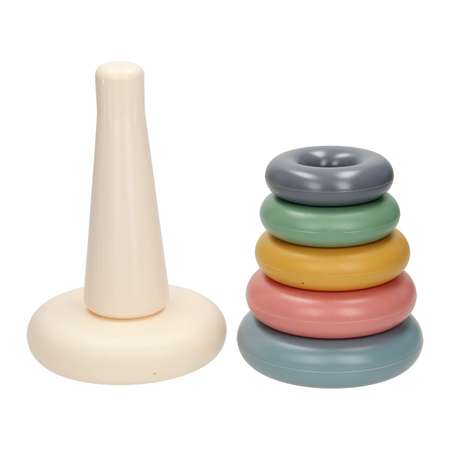 Lassen Sie Ihr Kind mit diesem schönen Stapelturm in sanften Pastellfarben spielerisch seine motorischen Fähigkeiten trainieren. Die 7-teiligen Stapelringe müssen um den Kunststoffhalter gelegt werden. Von groß nach klein, von klein nach groß: ein lustiges Spiel und gleichzeitig ein fröhlicher erster Einstieg in Raumkonzepte und Farben!