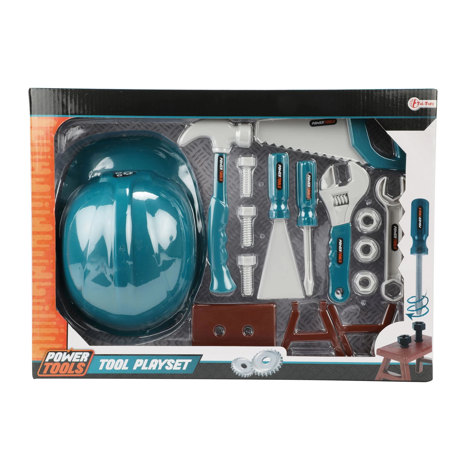 Mit diesem Werkzeugset sind Sie für jeden Job gerüstet! Setzen Sie Ihren Helm auf, schnappen Sie sich Ihr Werkzeug und legen Sie los! Den mitgelieferten Hocker können Sie mit dem Werkzeug selbst zusammenbauen. Inhalt: Hocker, 3 Muttern, 3 Schrauben, Hammer, Säge, Schraubenschlüssel, Schraubendreher und ein Helm.