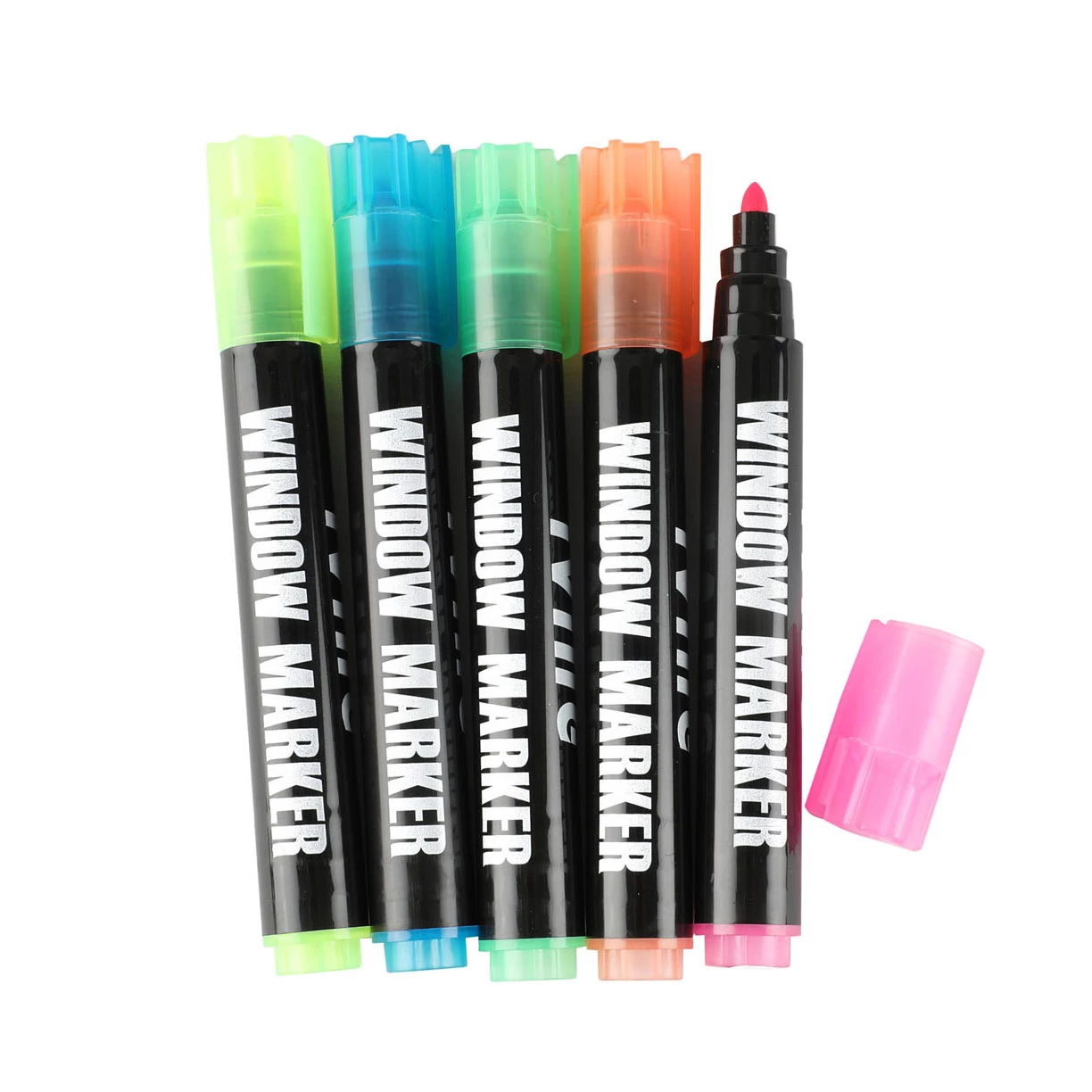 Mit diesen speziellen Fenstermarkern können Sie auf Fenstern, aber auch auf Spiegeln zeichnen! Sie können diese Objekte im Handumdrehen in farbenfrohe Gemälde-Leinwände verwandeln. Bitte natürlich zuerst Papa und/oder Mama um Erlaubnis! Glücklicherweise lässt sich der Marker leicht mit einem feuchten Tuch abwaschen. Das Paket enthält Fenstermarkierungen in 5 verschiedenen Farben. Stiftgröße: 12 Zentimeter.