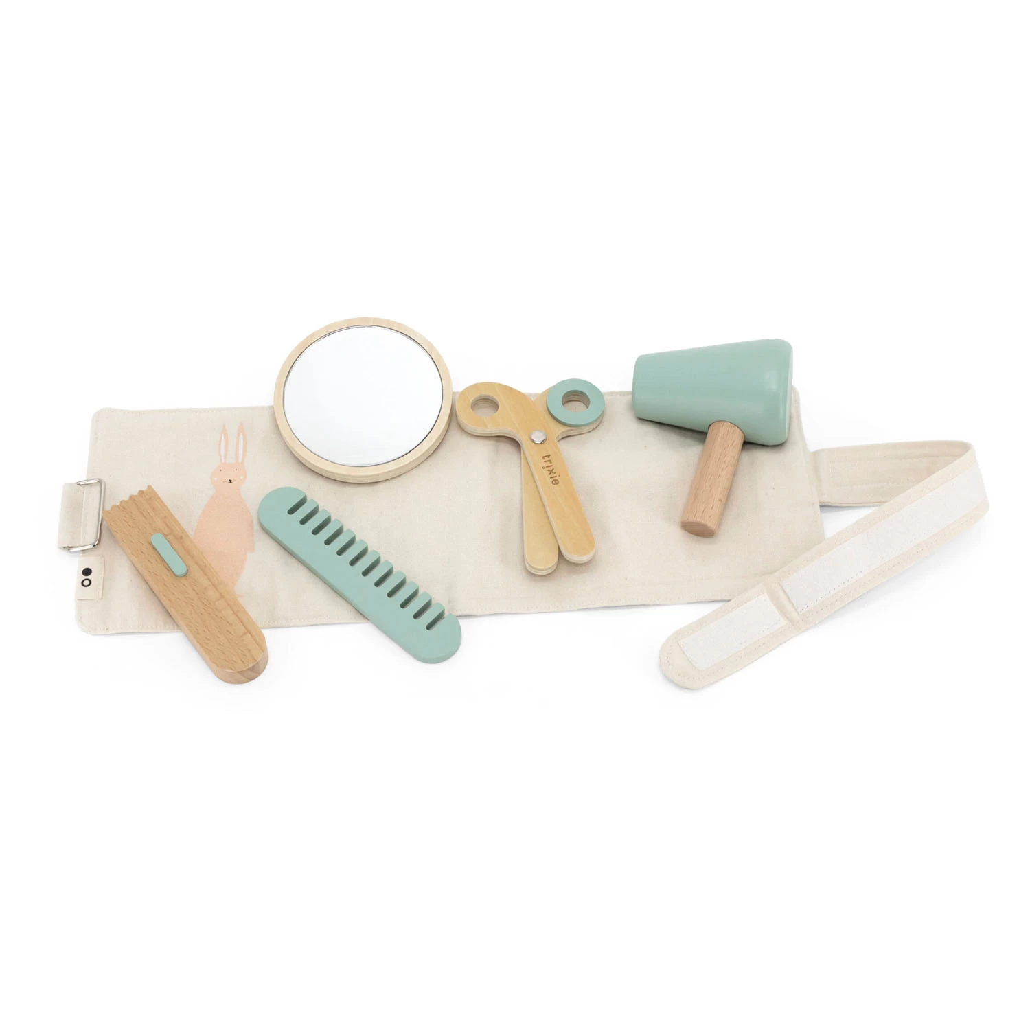 Ein wunderschönes Friseurset, das stundenlangen Spaß garantiert! Kämmen, schneiden, rasieren oder föhnen Sie Ihre Haare und betrachten Sie das Ergebnis im Spiegel. Die Tasche kann um die Hüfte getragen werden. Perfekt, um Ihrer Lieblingspuppe oder Ihren Lieblingsgeschwistern ein großes Makeover zu verpassen!