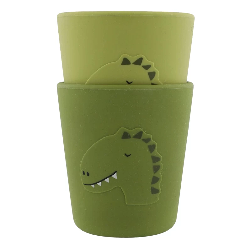 Ein lustiges und farbenfrohes Becher-Duo. In jeder Tasse ist unser tierischer Freund abgebildet, der es kaum erwarten kann, eine Mahlzeit mit Ihrem Kleinen zu teilen. Die Größe ist perfekt für kleine Hände. Die Tassen sind leicht stapelbar, sodass Sie sie kompakt aufbewahren können. Silikon ist ein großartiges Material für den Einsatz in der Küche. Es zerbricht nicht und kann sicher in der Mikrowelle, im Geschirrspüler, im Gefrierschrank und im Ofen verwendet werden. Auch bei intensiver Nutzung bleibt das Geschirr in gutem Zustand und kann problemlos an kleine Brüder, Schwestern oder Freunde weitergegeben werden. Das zu 100 % lebensmittelechte Silikon erfüllt alle europäischen Sicherheitsstandards. Materialien: 100 % Silikon. Empfohlenes Alter: Ab 4 Monaten. Abmessungen (L x B x H): 7,5 x 7,5 x 8 cm