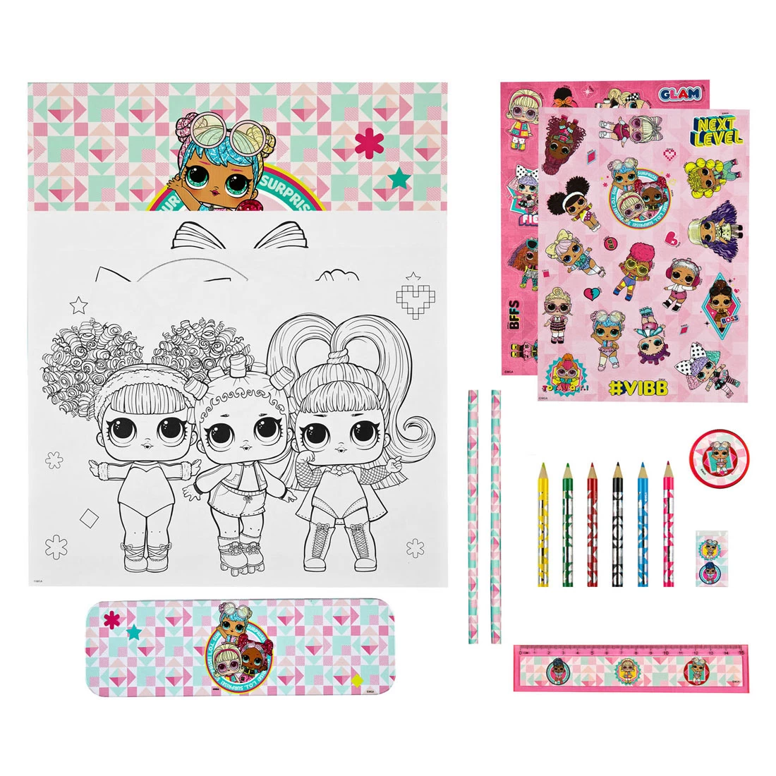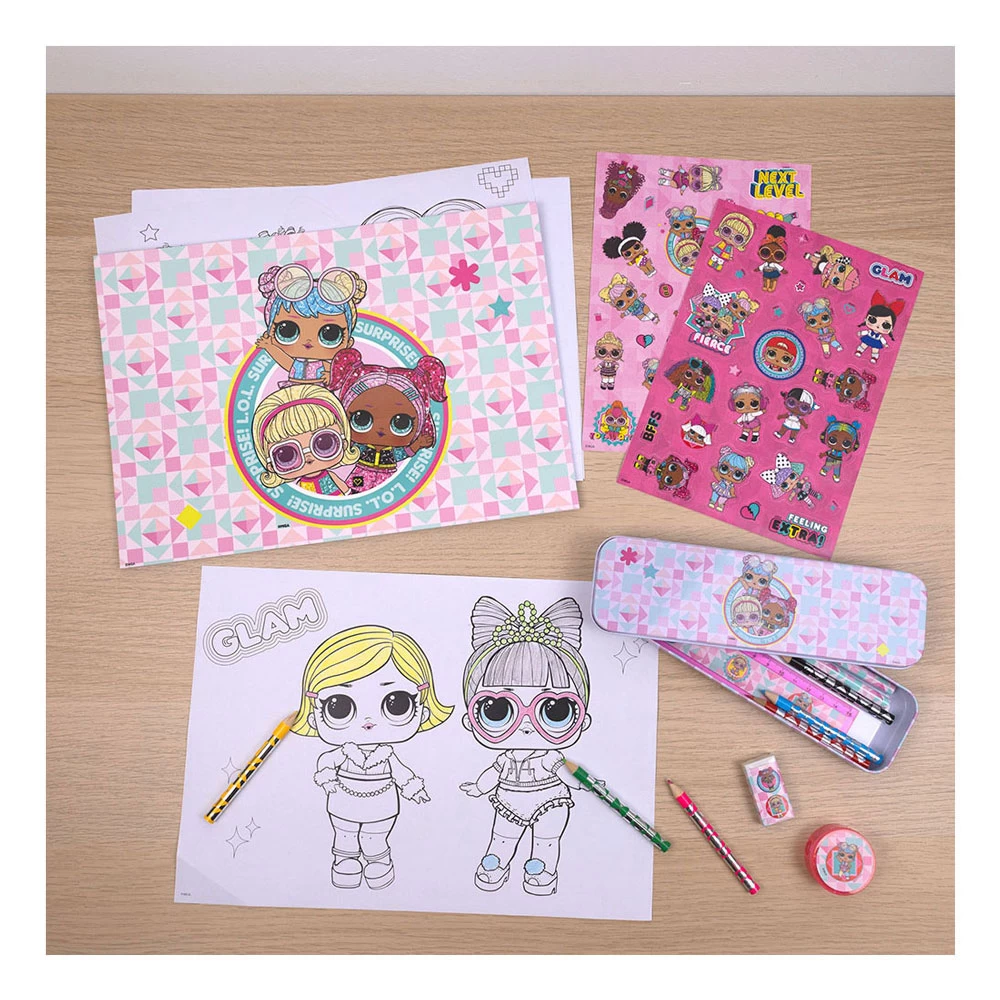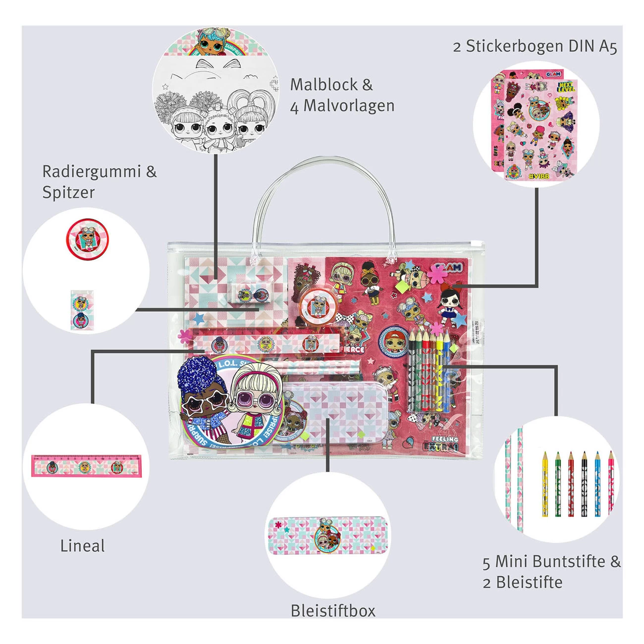 Verbringen Sie Stunden damit, mit L.O.L. kreativ zu werden. Überraschung! Diese transparente PVC-Tasche enthält allerlei schöne Schreibwaren mit L.O.L.-Motiven. Überraschung! Puppen darauf. Sind Sie mit dem Schreiben oder Malen fertig? Anschließend können Sie alles bequem in der verschließbaren Tasche verstauen. Ideal zum Mitnehmen!