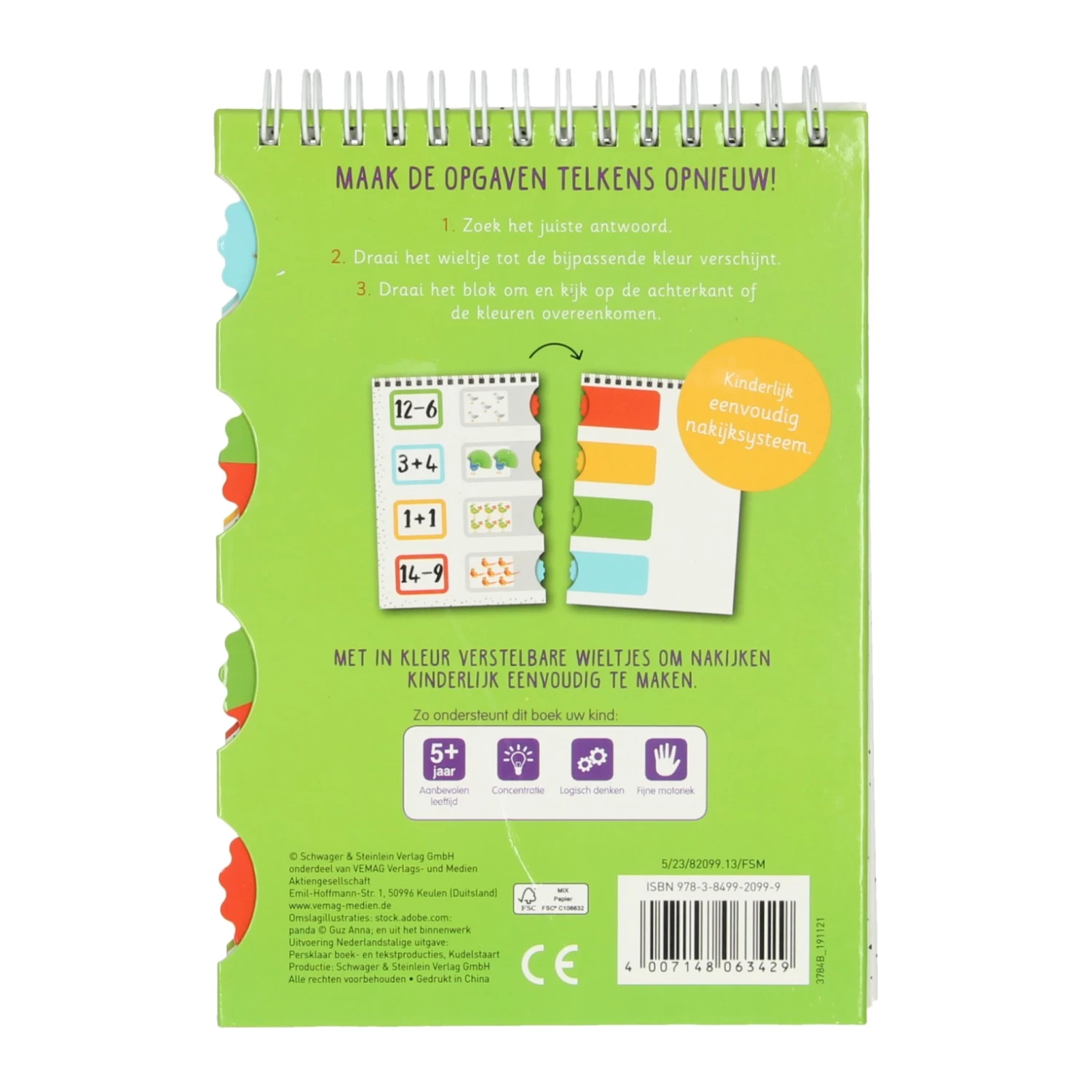 Machen Sie die Übungen immer wieder! Finden Sie für jede Rechenaufgabe die richtige Antwort und drehen Sie das Rad, bis die passende Farbe erscheint. Drehen Sie den Block um und überprüfen Sie die Rückseite, um zu sehen, ob die Farben übereinstimmen.