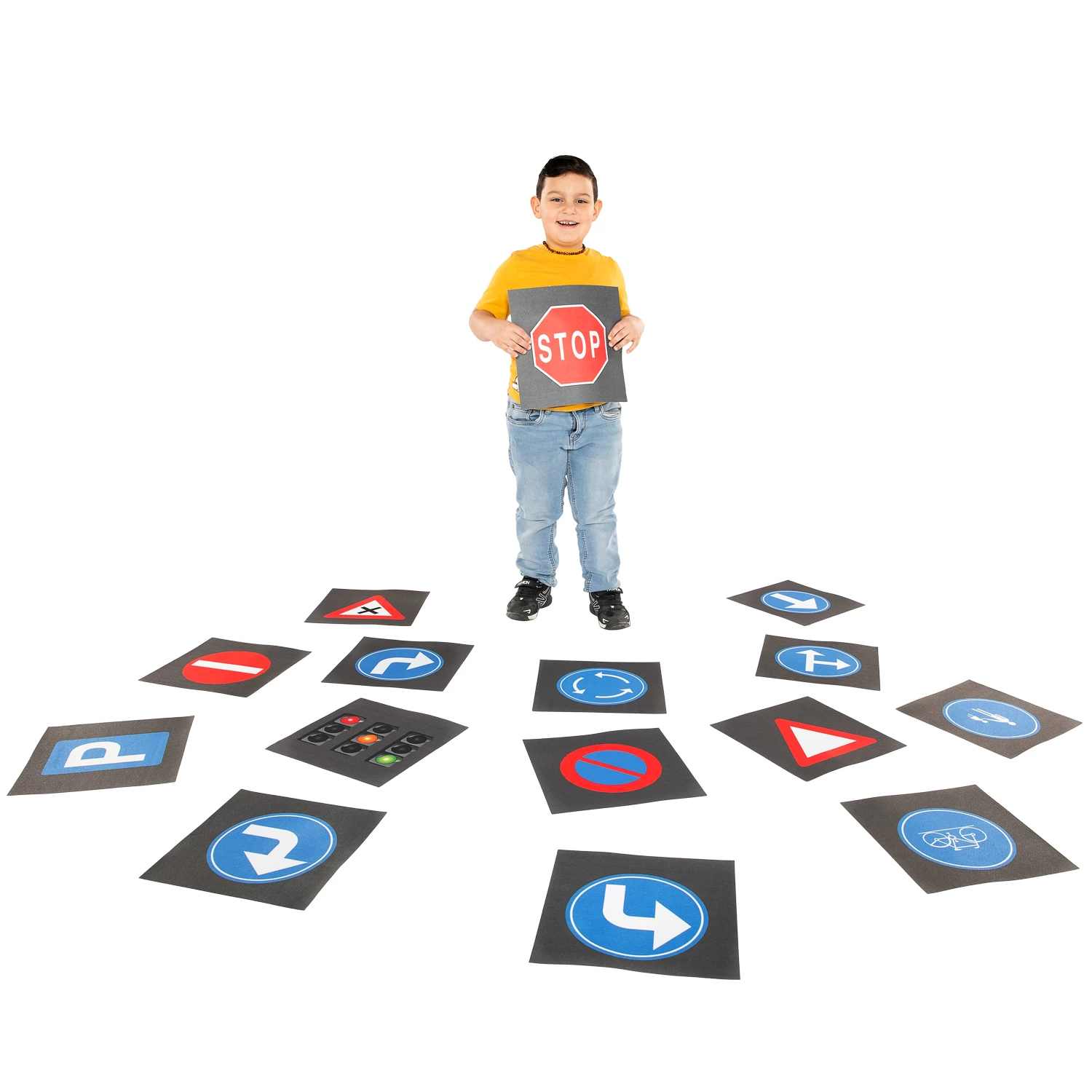 Dieses Set besteht aus 15 der wichtigsten Verkehrszeichen für Kinder. Das Erkennen lernt ein Kind am besten durch eine kurze Erklärung und anschließende praktische Erfahrung.