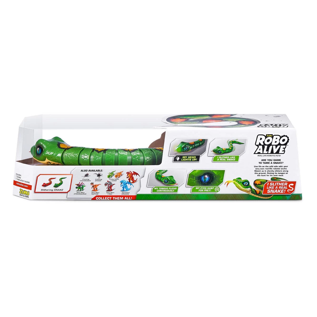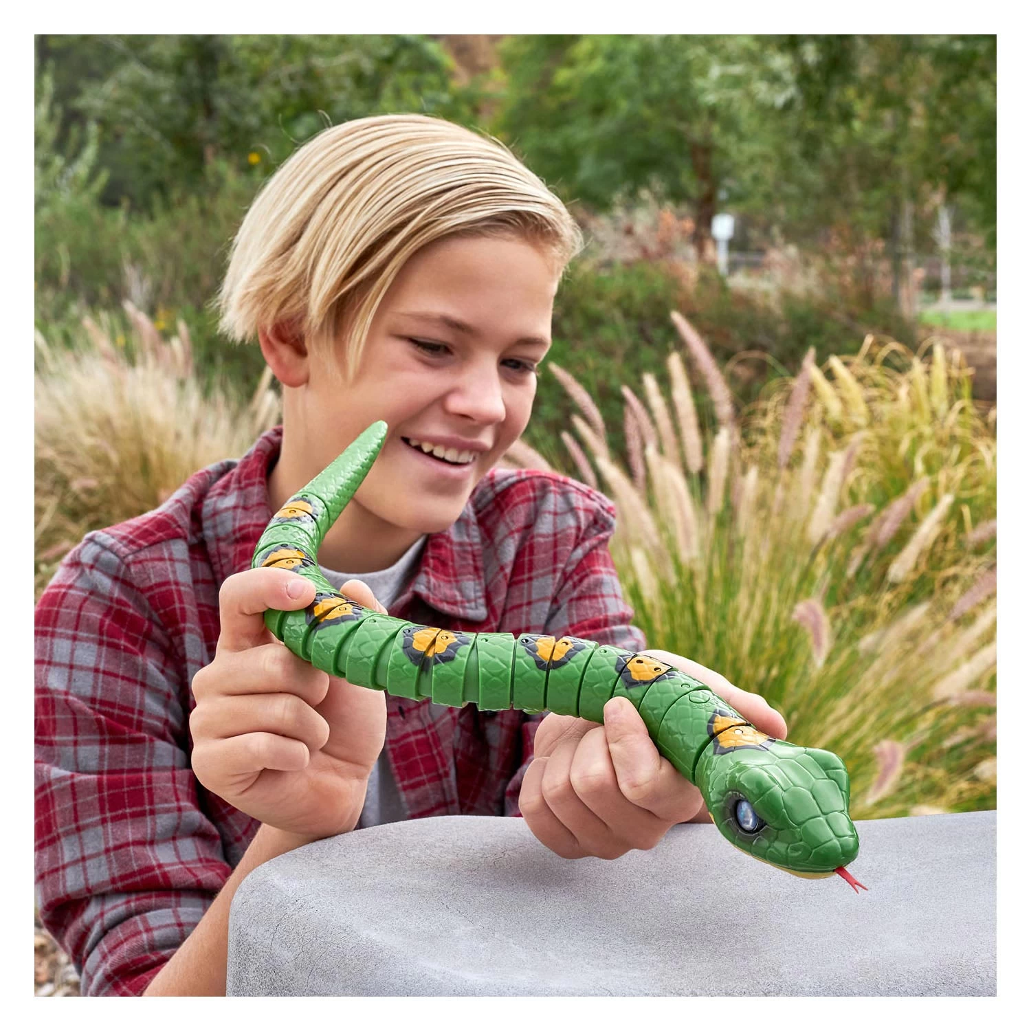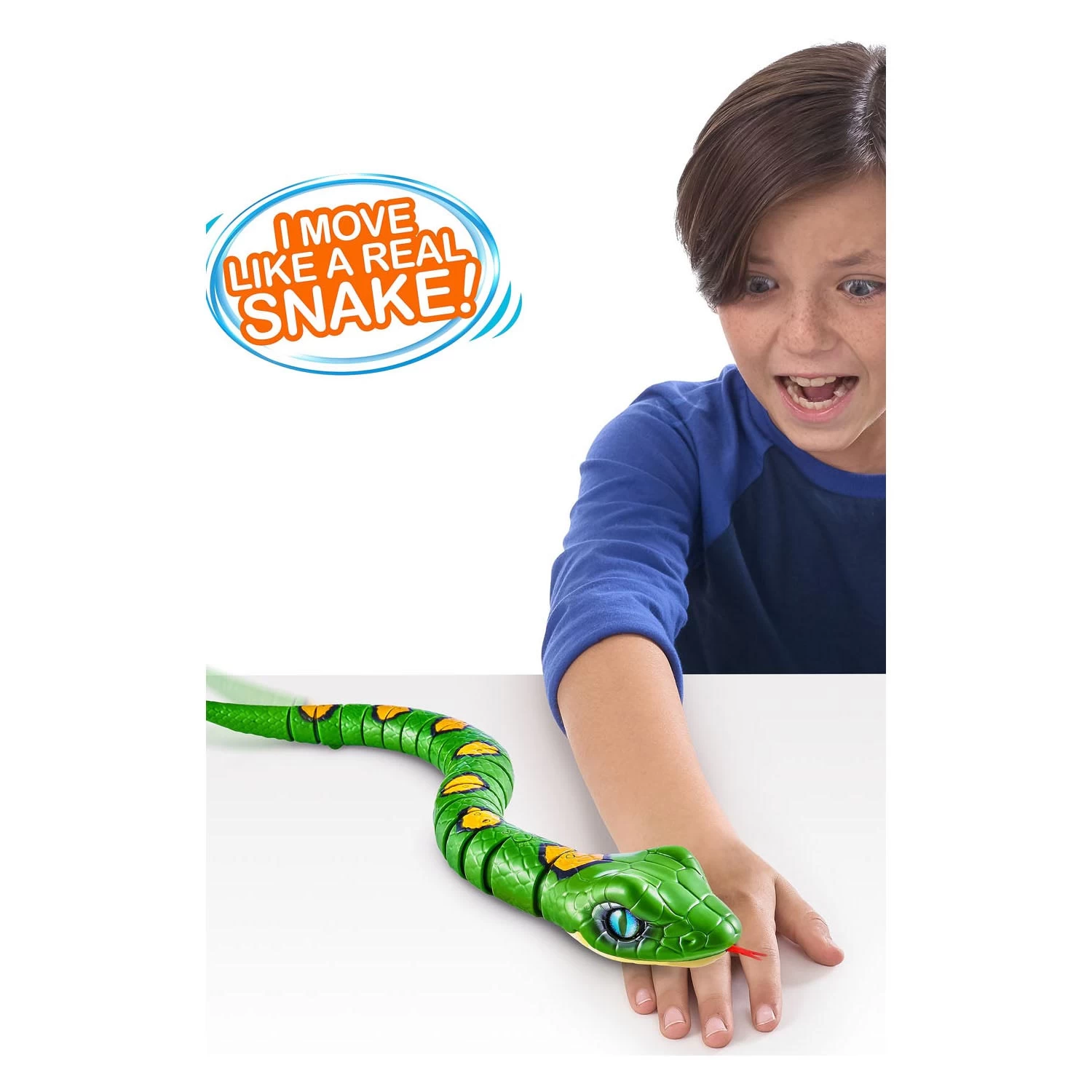 Lebe ein Leben auf der wilden Seite mit der Slithering Snake von Robo Alive. Beobachten Sie, wie Ihre grüne Schlange lautlos dahingleitet, ihre Zunge bewegt und ihre Augen bewegt, genau wie eine echte Schlange auf der Jagd nach ihrer nächsten Mahlzeit.